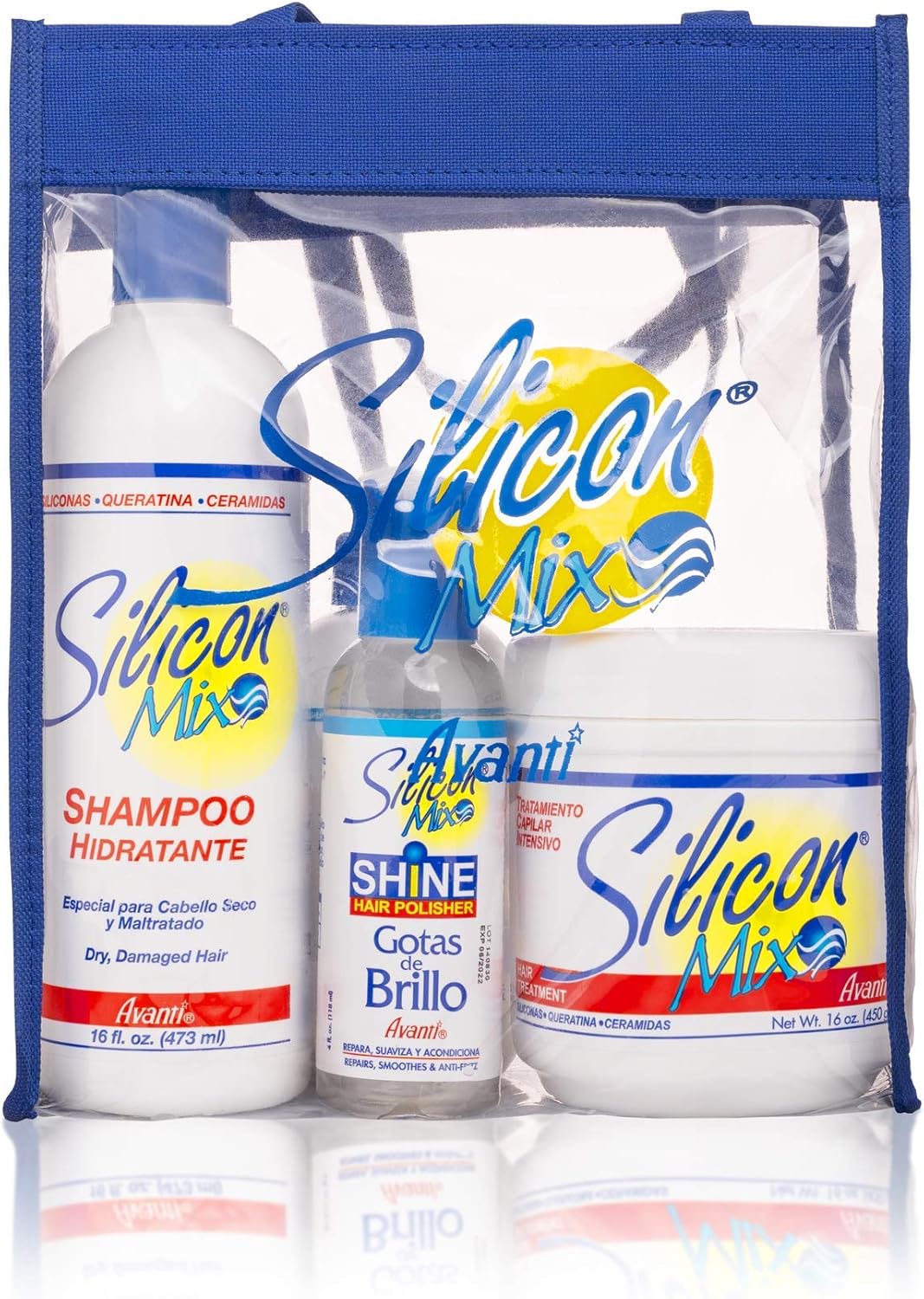 • 4-step Silicon Mix Kit including the free bag. Kit savings compared to buying products separately. Consists of: Shampoo, Treatment, Leave-in Conditioner, Hair Polisher.